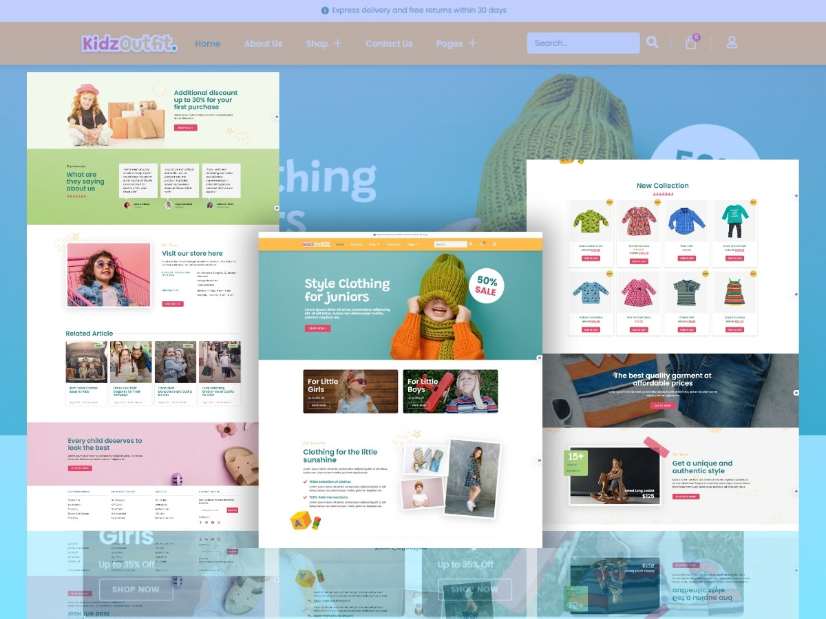 ECommerce website design for a kids' fashion brand