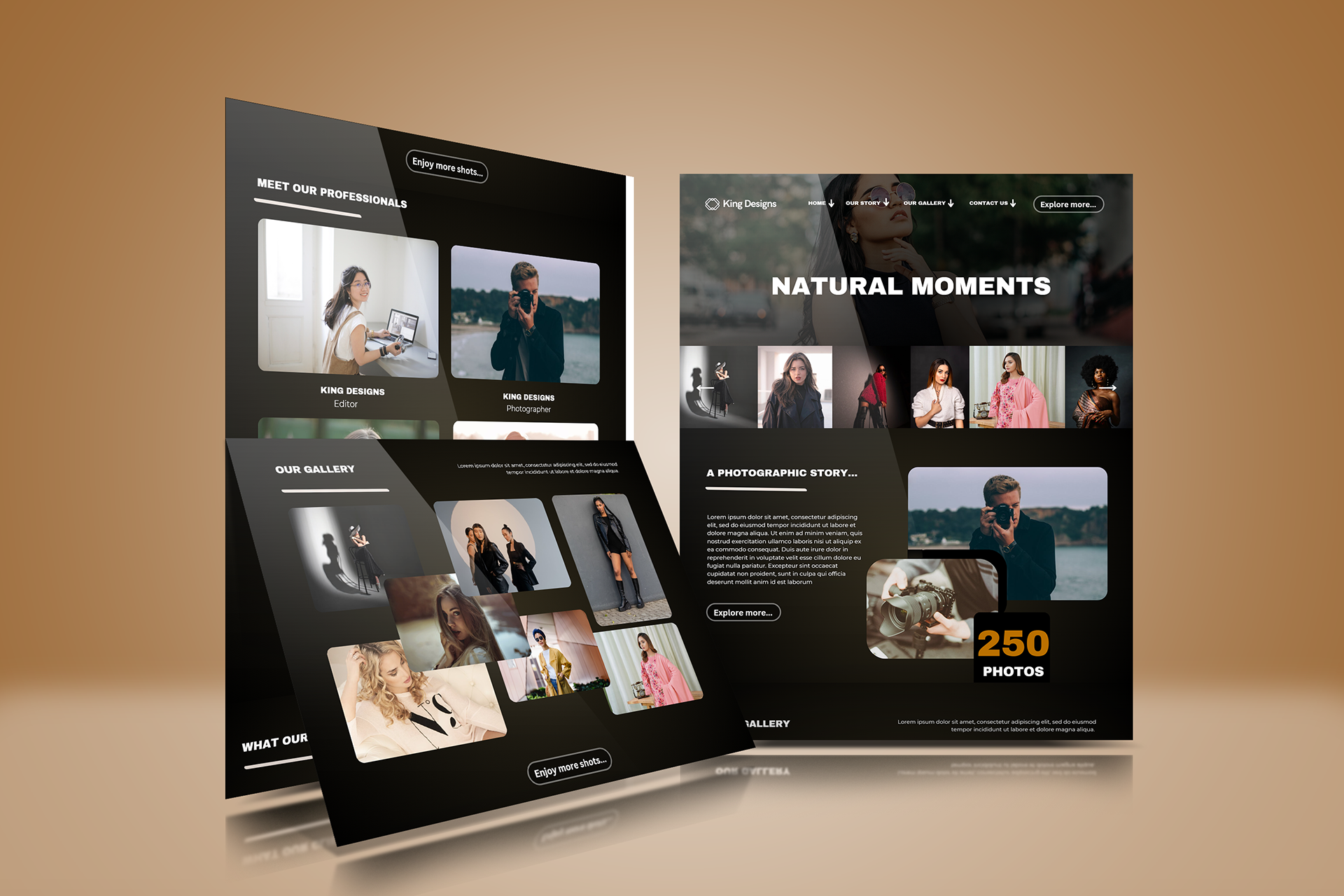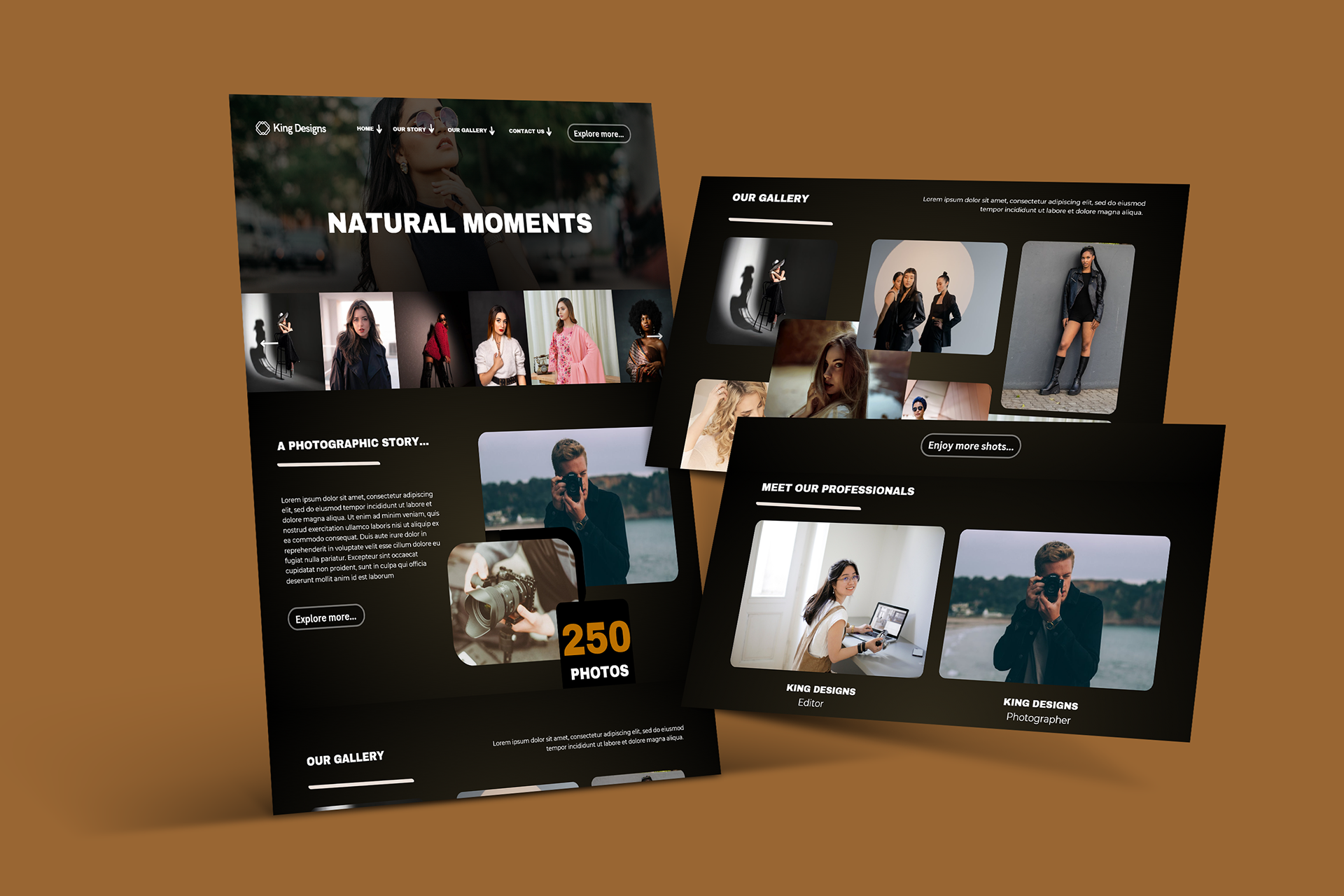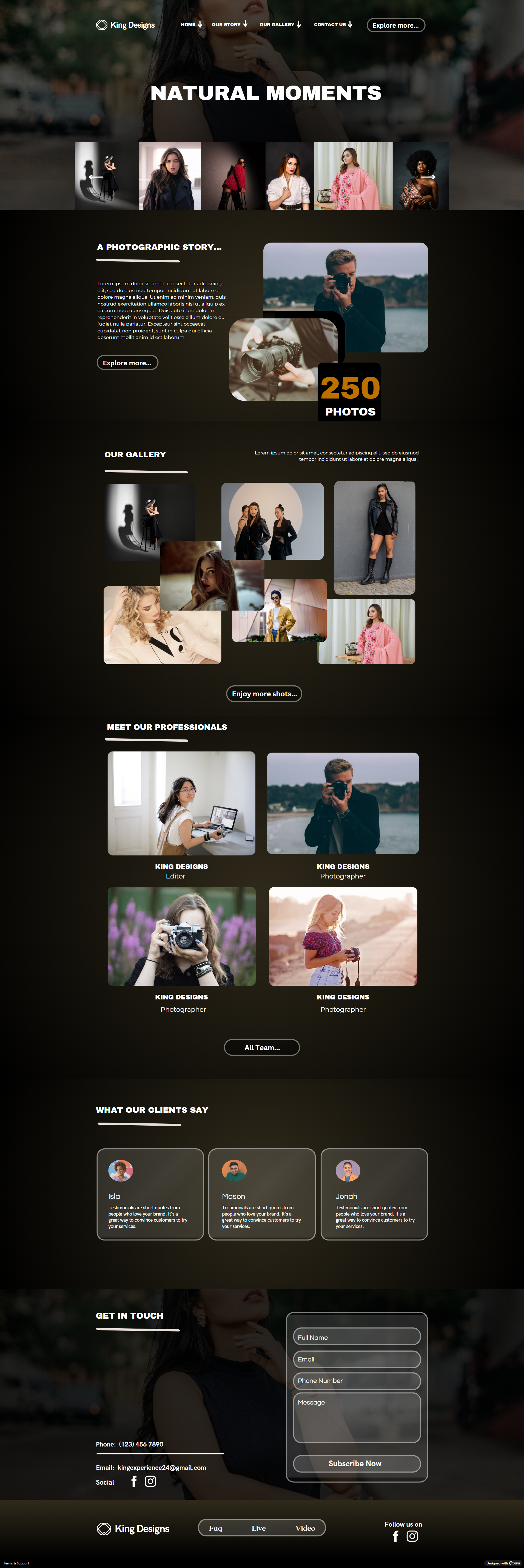 This project was created to showcase how a photographer’s portfolio can feel cinematic, emotional, and visually engaging. I designed a clean hero section, structured galleries, and warm tones to bring each moment to life. The goal was simple: build a website where images speak first, supported by a layout that enhances storytelling, professionalism, and the photographer’s brand identity.